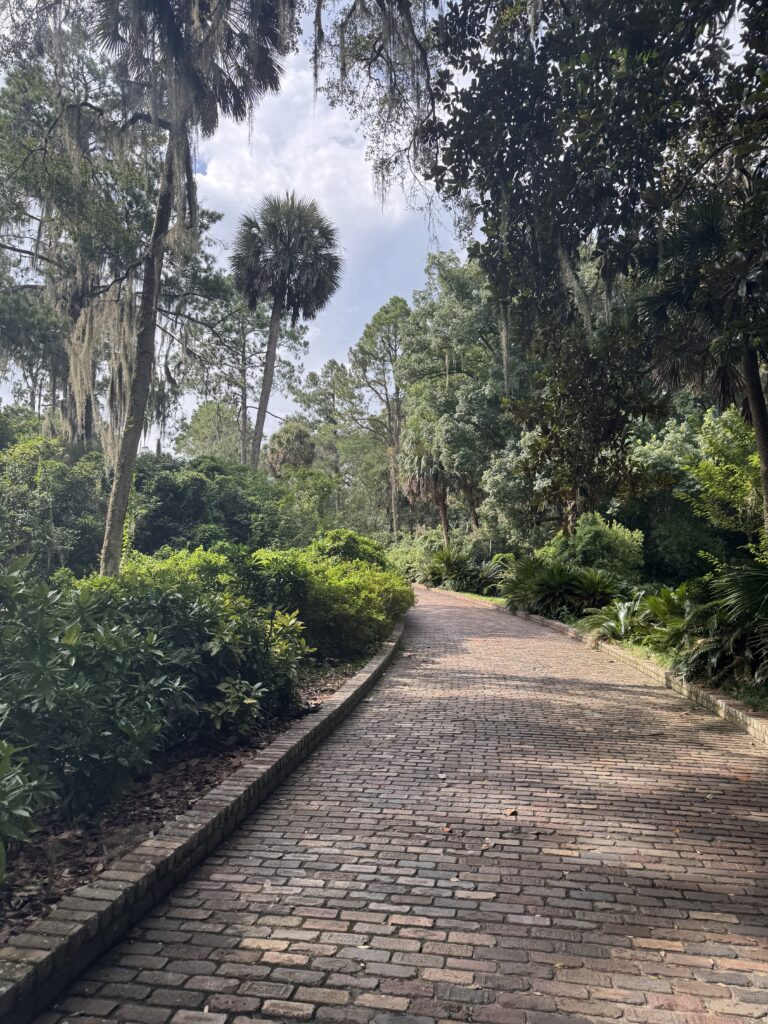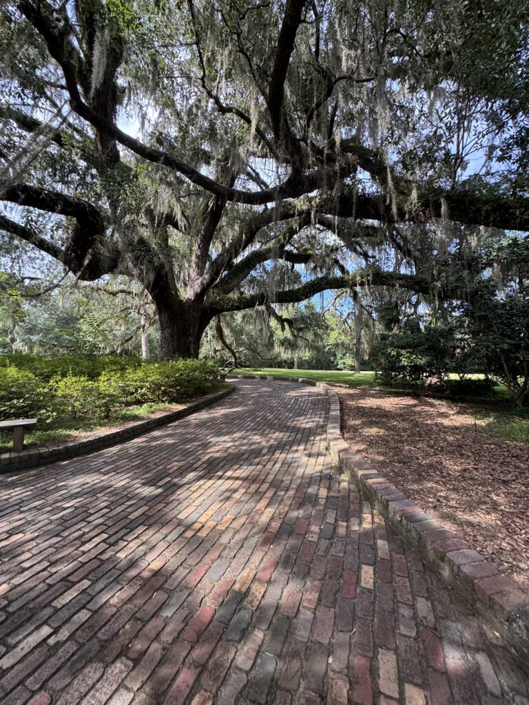 On our recent visit, the first thing that struck us was the majestic oak and pine canopy, draped in Spanish moss. The shaded brick walkways guided us into different sections of the gardens. We were struck by the sense of age and beauty rooted in the landscape.